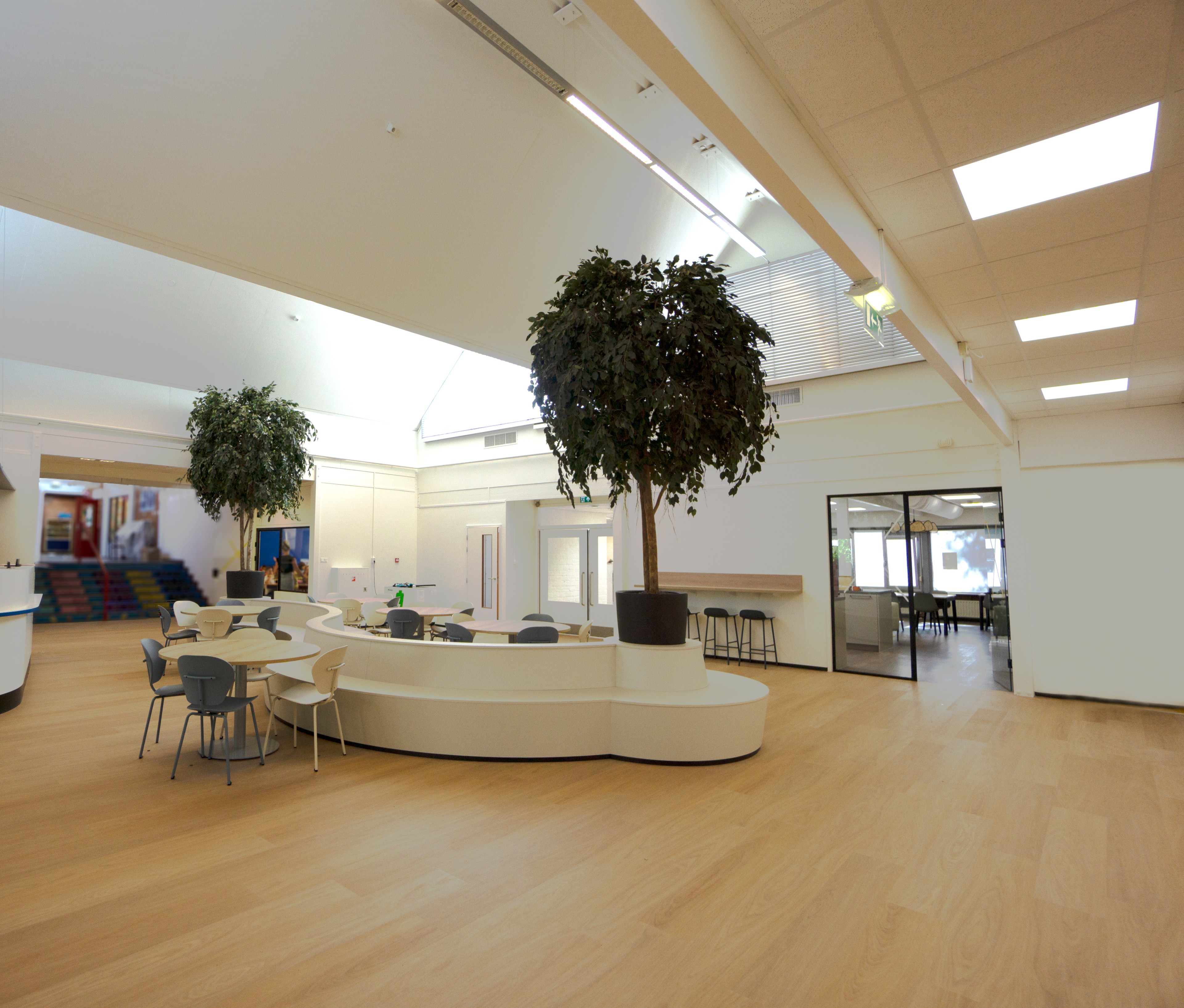 Ook het leerplein is aangepakt en voorzien van een maatwerk bank die samenwerking en flexibel leren ondersteunt. Daarnaast zijn de teamkamer en directieruimte volledig vernieuwd, zijn toiletgroepen gerenoveerd en zijn glazen deuren vervangen voor betere toegankelijkheid en een open uitstraling. Met deze ingrepen is De Contrabas technisch, functioneel en visueel volledig klaar voor langdurig gebruik binnen het onderwijs.